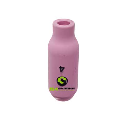 Сопло керамическое № 4  предназначено для формирования равномерного потока защитного газа при ручной аргонодуговой сварке методом TIG. Изготовлено из керамики высокого качества, что способствует большому сроку службы сопла, не смотря на постоянное взаимодействие с раскаленным металлом. Керамическое сопло № 4 применяется для горелок TS 17; TS 18; TS 26.