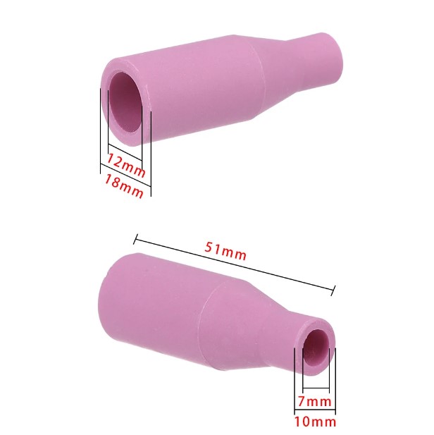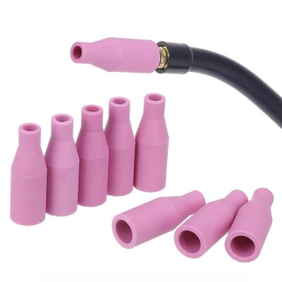 Температура сварочной ванны при сварке самозащитой проволокой выше в сравнении с температурой ванны при сварке MIG/MAG. Отсутствие потока защитного газа осложняет дополнительное охлаждение сопла. За счет этого в процессе сварки может происходить перегрев стандартного металлического сопла и повышаться вероятность возгорания диэлектрической вставки. Однородный керамический состав сопел исключает вероятность возгорания и делает процесс сварки безопаснее. Подходит для горелок: MIG 140 / MIG 15 и их аналогов.
